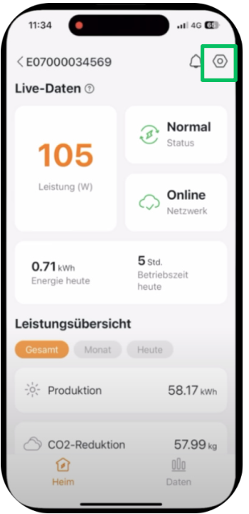 Tippe in Deiner App rechts oben auf das Symbol "Einstellungen".